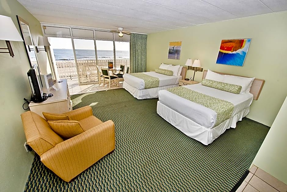 This room features a private balcony with ocean views and a kitchenette with a stovetop, refrigerator and microwave.